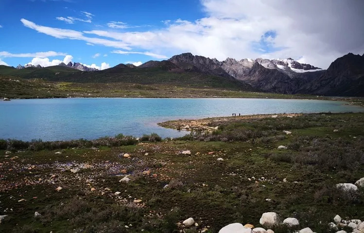 当阳光洒向湖面,湖水便在周围的雪山映衬下显现出色彩,幽然清冷