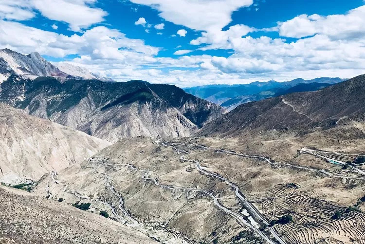 72道拐从最低点海拔3100米,攀升至最高点业拉山口海拔4651米,再盘旋下降至邦达镇海拔4100米